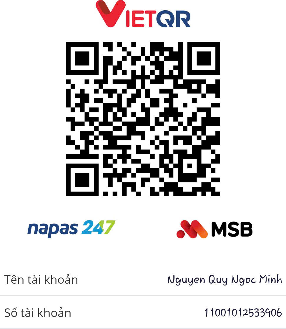 | Ngân hàng TMCP Hàng Hải Việt Nam (MSB) | 11001012533906 | Nguyễn Quý Ngọc Minh | TẠI ĐÂY |